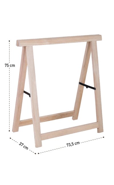 Con una altura de 75 cm, el Caballete Pro se alinea con las medidas ergonómicas estándar, haciéndolo perfecto para múltiples usos. Sus dimensiones exactas de 73,5 cm de largo, 37 cm de fondo y 75 cm de alto proporcionan una base firme para cualquier superficie que se le incorpore.