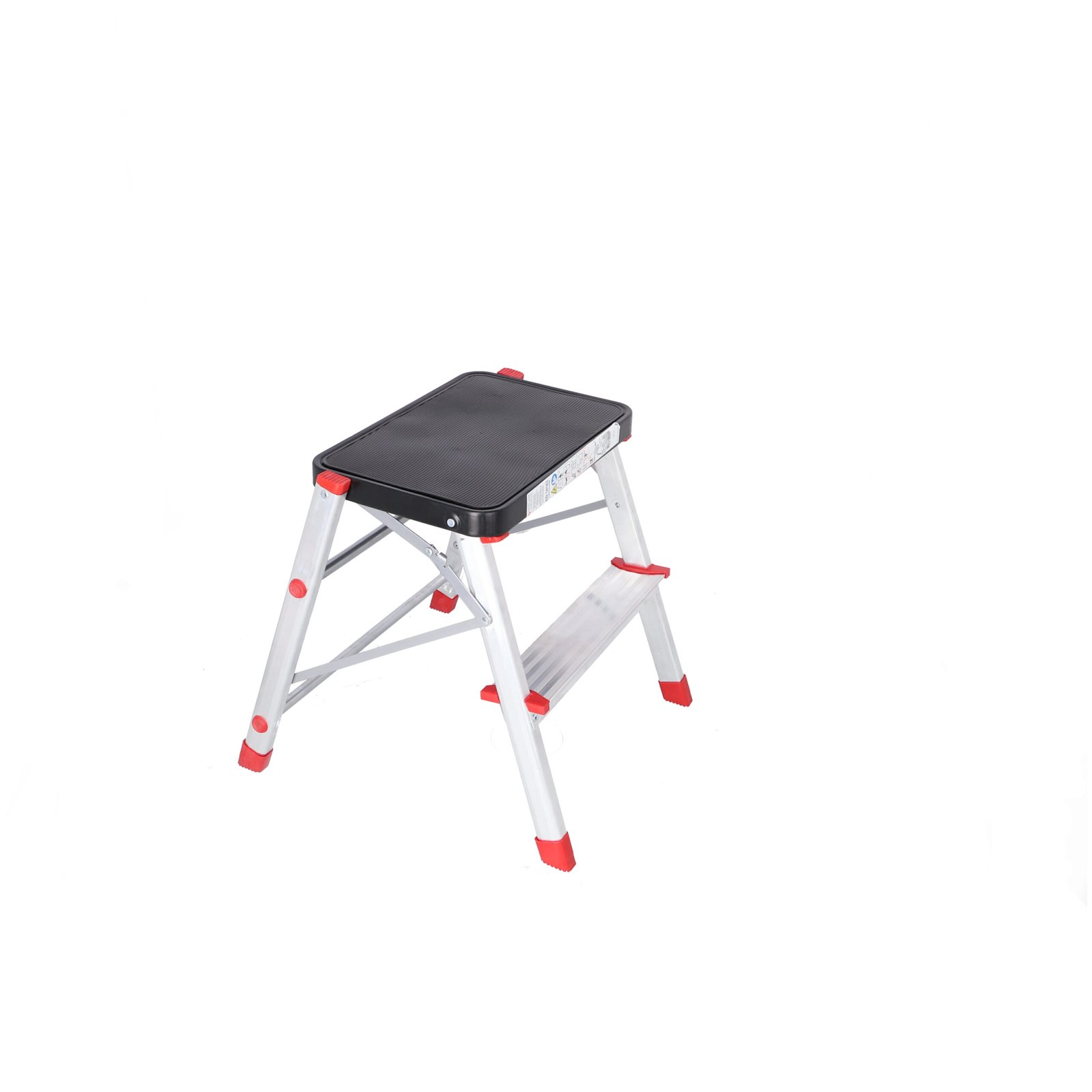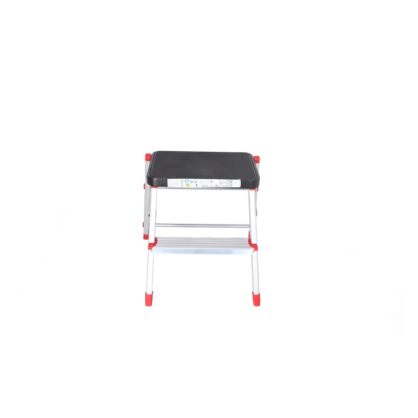 Cuenta con dos peldaños que facilitan alcanzar altura de forma cómoda, además de una plataforma superior amplia que mejora la estabilidad durante su utilización. Sus superficies antideslizantes aumentan la seguridad, incluso en usos frecuentes.