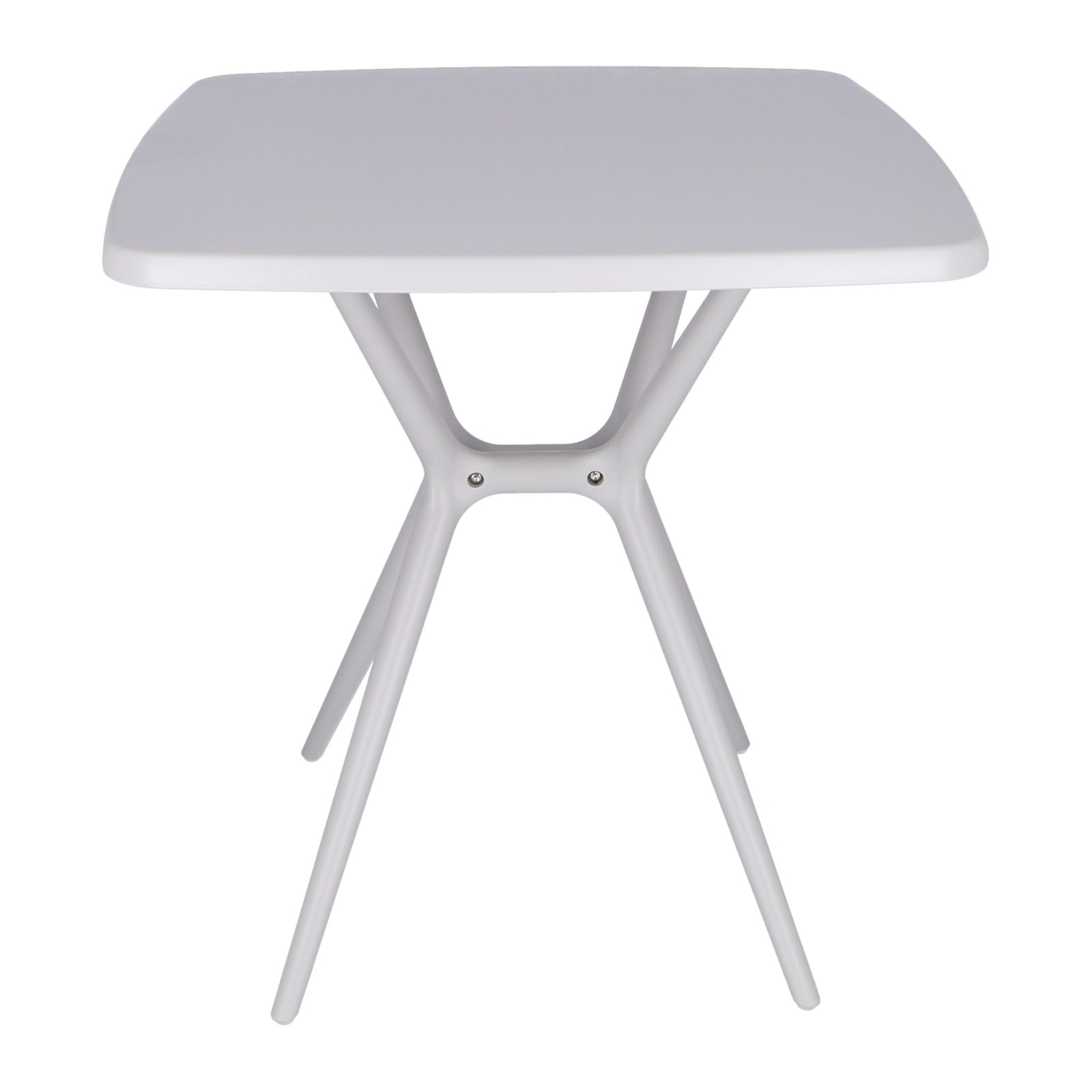 Disponible en color blanco y gris, destaca por su diseño limpio y contemporáneo, ideal para integrarse fácilmente en diferentes ambientes, tanto en interiores como exteriores. Su estructura proporciona estabilidad y resistencia, mientras que su acabado facilita la limpieza y el mantenimiento diario.